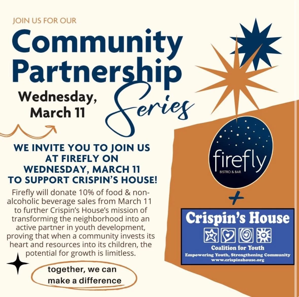 We are so incredibly grateful to the Firefly team and everyone who joined us for our recent kickback event. Together, we raised $463 for Crispin’s House Coalition for Youth!